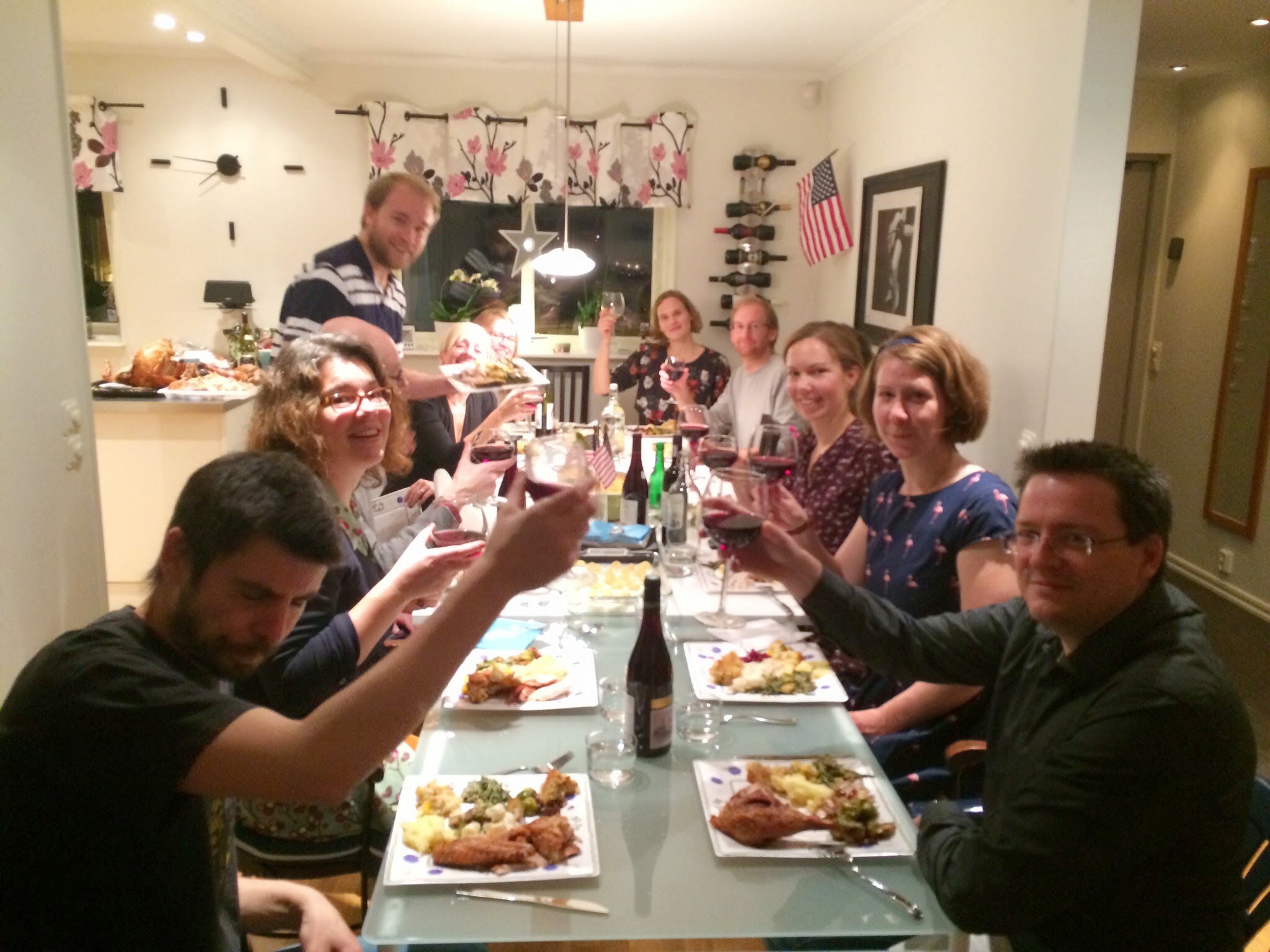 Everybody brought something and in the end we had a ridiculous amount of food: turkey, dressing, butternut squash quiche, cranberries, mashed potatoes, deviled eggs, Brussels sprouts, cauliflower and bechemel, gravy, apple pie, pumpkin cheesecake, pecan pie, and on and on! We packed to go containers for everyone, explaining the importance of Thanksgiving leftovers. We had 10 countries represented and everyone was so happy to get to enjoy a real Thanksgiving.